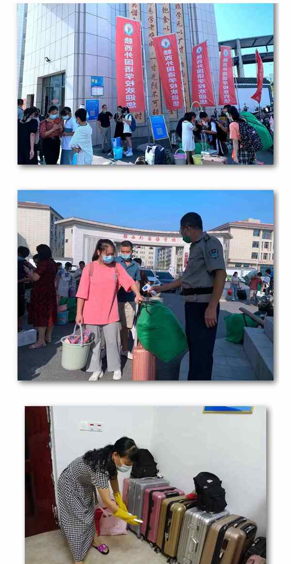 彩旗飄飄的校園、打掃一新的教室、嚴陣以待的迎新人員……8月30日起,贛西外國語學校陸續迎來了分批返校的學子們。孩子們身背行囊,滿懷期待的踏上新征途。頭戴小紅帽的志愿者們,在崗位上認真地做好健康檢測、指引等工作。回到宿舍,親愛的生活老師們正仔細對同學們的行李進行二次消毒。