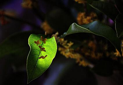 好花知時(shí)節(jié)。每當(dāng)桂花飄香時(shí),江南的天總是最清朗的時(shí)候。清爽的空氣,清淡的日光,清粼的江水,清靜的心境,很少見(jiàn)得塵土飛揚(yáng),青翠欲滴的綠色,鋪滿了整個(gè)江南,人也就變得通暢起來(lái)。桂花樹(shù)的葉大,綠得深沉,桂花乳白,有的淡黃色,雖然細(xì)小,花開(kāi)之時(shí)卻很繁茂。細(xì)小的花兒開(kāi)在龐大的樹(shù)上,或乳白或淡黃的花配上深深的綠,自然給人另一種美態(tài),那就是一種穩(wěn)重之美,端莊之美,素雅之美。