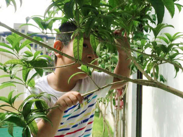 大自然就是孩子們最好的老師,孩子是屬于大自然的,孩子們?cè)谕嫠V懈形蜃匀弧9鸹淝逑愕牛绕涫堑S或金黃的小花,簇?fù)碓诟髯缘闹︻^,可愛至極,花瓣在風(fēng)中搖擺著頭送出馨香,顯得親切而溫暖。孩子們興奮地觀察著桂花的形狀,聞著桂花的香氣,在這個(gè)時(shí)節(jié)上了一堂有趣的自然課。