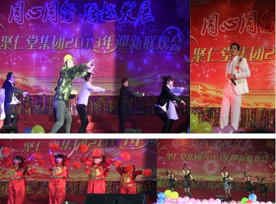 “難忘今宵,難忘今宵,無論天涯與海角,聚仁堂人同懷抱……”當(dāng)這熟悉而優(yōu)美的旋律響起,歷時3個半小時的聚仁堂集團2013年迎新聯(lián)歡會圓滿落幕,但不落的是全體聚仁堂人澎湃的激情。本次聯(lián)歡會的所有節(jié)目均有集團各單位的員工們自編自導(dǎo)自演,精彩的演出既展現(xiàn)了聚仁堂人多才多藝、積極向上的良好精神風(fēng)貌,也展現(xiàn)了集團“聚仁士 獻仁愛”的真正魅力。